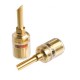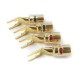 The Banana pin also fits BFA connectors. The Spade is angled for easier mounting in tight spaces. It has a two- step, width opening.